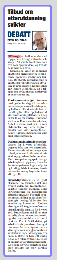 Norske toppledere: Tilbud om etterutdanning svikter