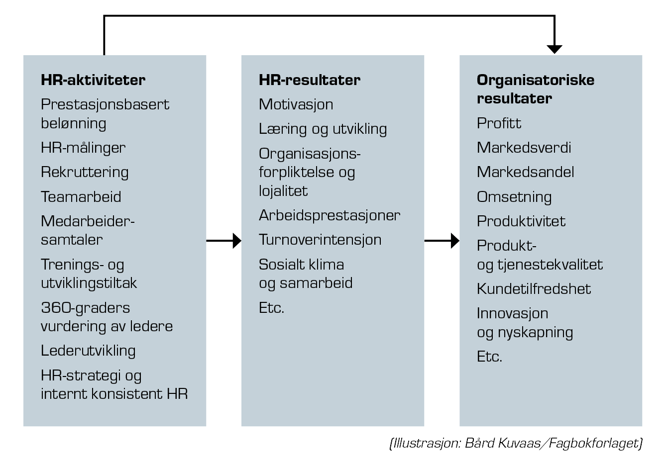 Mange har hatt «Lønnsomhet gjennom menneskelige ressurser – Evidensbasert HRM» av Bård Kuvaas, professor på BI, som pensumbok. Da husker vi det han kaller «indre og ytre konsistens», som tydeliggjør skillet mellom HR-aktiviteter, HR-effekter og virksomhetseffekter. Hvor den ytre konsistensen betyr at aktiviteter bygger opp under mer overordnede mål og resultater, men hvor den logiske koblingen og utledningen fortrinnsvis skal gå motsatt vei. Det er strategien som er førende på hvilke valg man gjør på aktivitetsnivå – ikke omvendt.