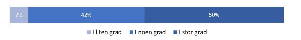 Figur 4: I hvilken grad opplever ledere i din organisasjon at det har blitt mer krevende å følge opp ansatte de siste 12 månedene?